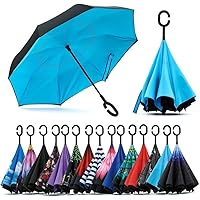 gs GREATERSCAP Reverse Inverted Windproof Upside Down Umbrellas with C-Shaped Handle for Women and Men - Double Layer Inside Out Folding Umbrella (Light Blue)